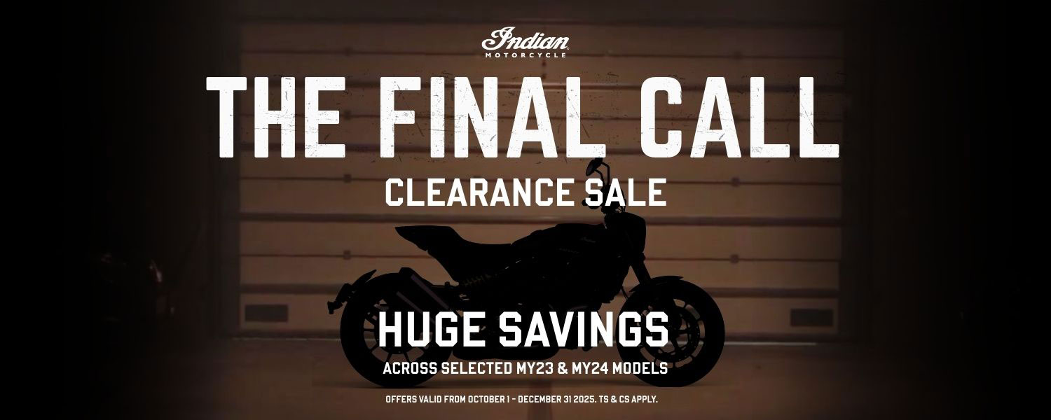 25/09/2025 FINAL CALL: Massive Savings Across the Indian Motorcycle Range!Now’s your last chance to ride away with unbeatable deals on select Indian Motorcycle models! The FINAL CALL clearance sale is here, offering huge...
