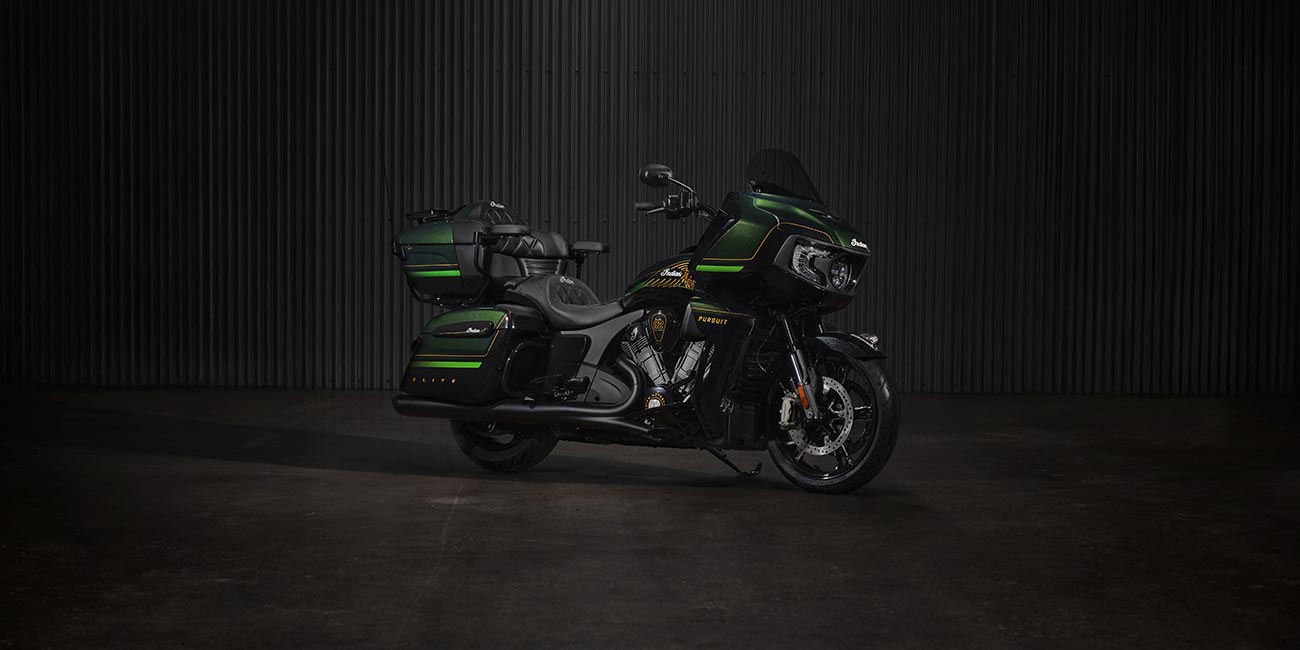 | Standard Equipment | Remote Locking Hard Saddlebags, Power Adjustable Windshield, 140+ Litres of Storage, Keyless Ignition, Adjustable Fairing Vents, USB Charger, Tyre Pressure Monitoring System (TPMS), Headdress Floorboards for Rider and Passenger, Green Colour-Matched Stitched Heated Seats, Backlit Switch Cubes with Heated Grips, Passenger Arm Rests, and Driving Lights |