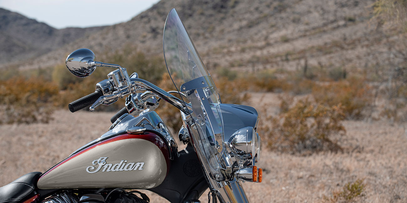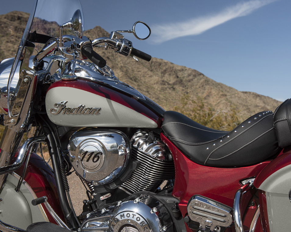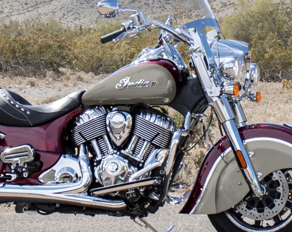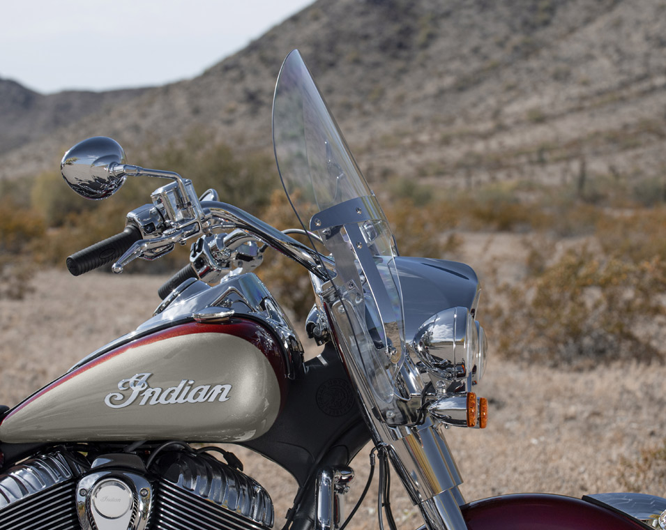 Quick Release Windshield, Remote-Locking Hard Saddlebags, Highway Bars, Tire Pressure Monitoring, Selectable Ride Modes, ABS, Cruise Control, Keyless Ignition, Indian® Script Tank Badge, 12v Charging Port
